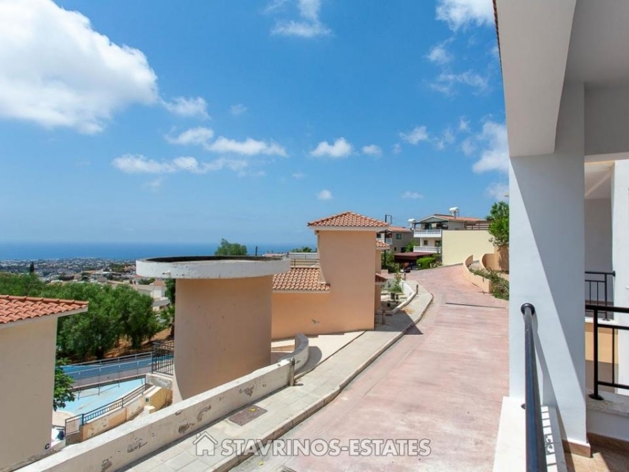 The apartment in Pegeia, Paphos, Cyprus offers partial sea views and access to a communal swimming pool.